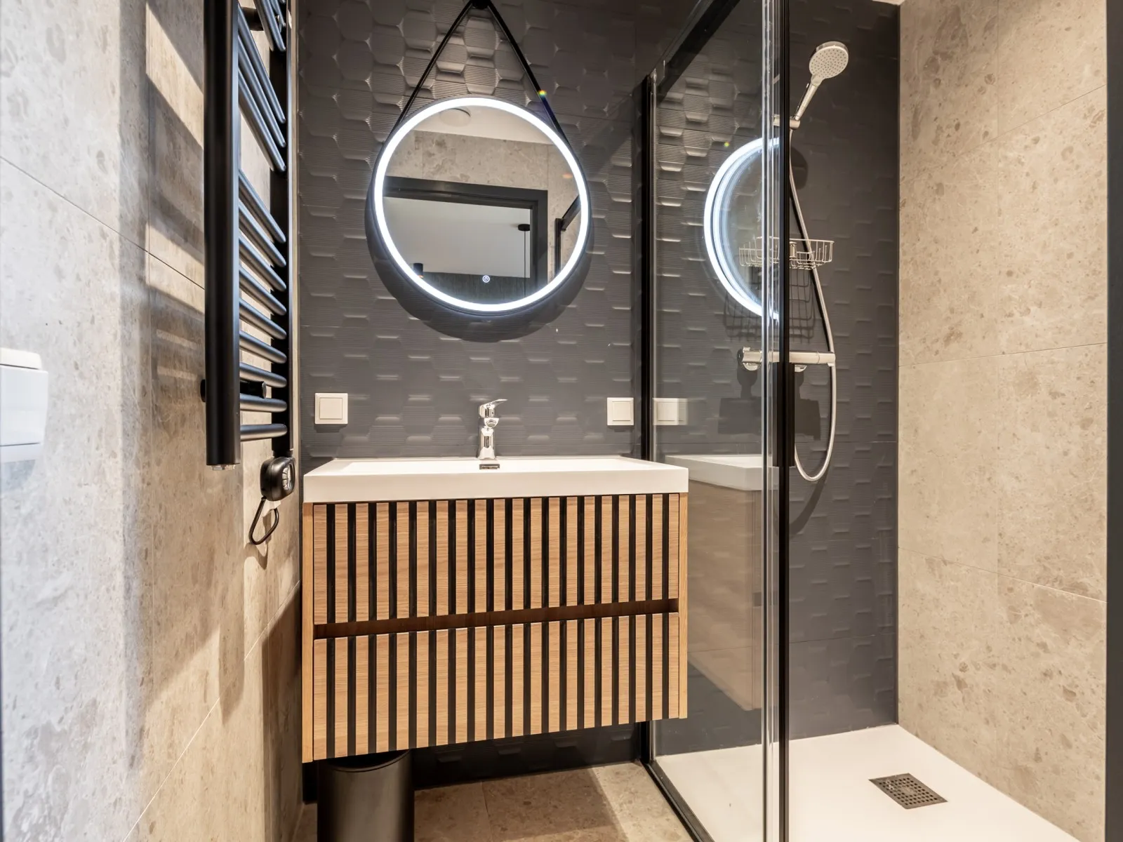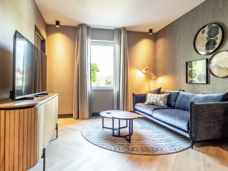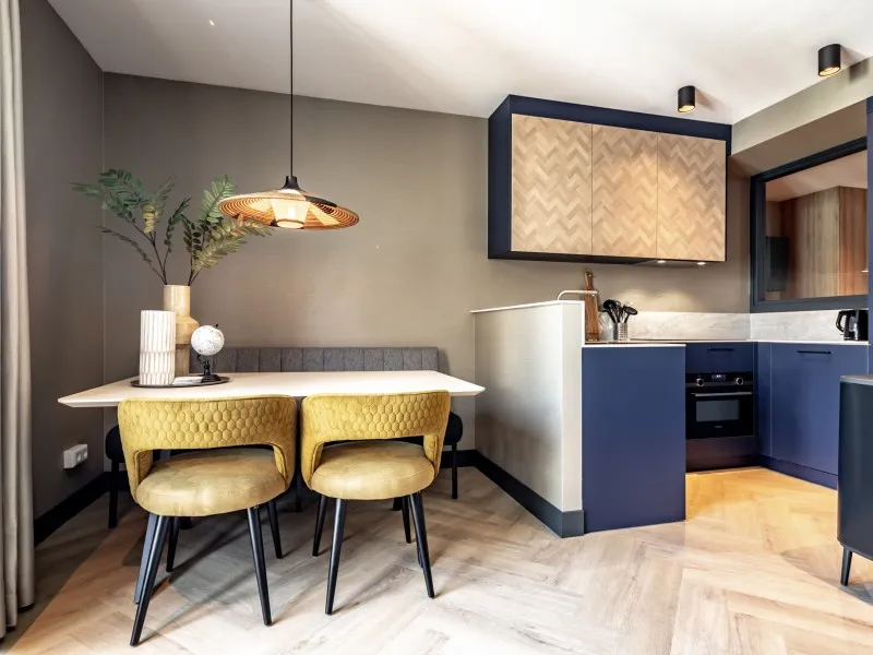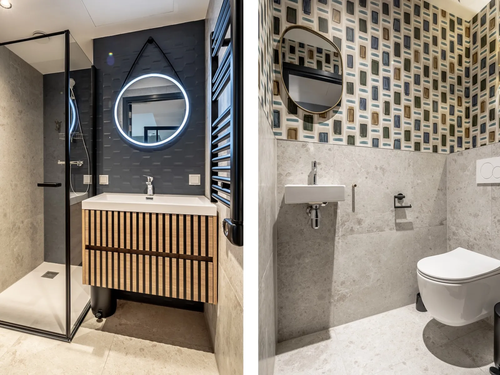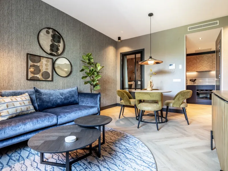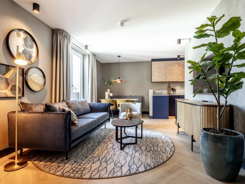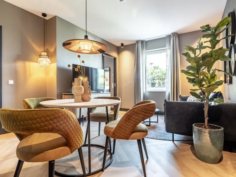 Dieses stilvolle 2-Schlafzimmer-Apartment mit einer Fläche von ca. 60m2 ist perfekt für Familien, Freunde oder Kollegen, die gemeinsam reisen. Es verfügt über eine voll ausgestattete Küche mit einem gemütlichen Essbereich, während das Wohnzimmer mit einem SMART-TV und Chromecast Komfort bietet. Ein Schreibtisch steht für Arbeitszwecke zur Verfügung und eine zuverlässige High-Speed-Internetverbindung ist vorhanden. Die Wohnung verfügt über zwei Schlafzimmer mit bequemen Boxspring-Betten, beide mit SMART TV und Chromecast. Das stilvolle Badezimmer verfügt über eine Dusche, einen Waschtisch mit Schubladen und einen beheizten Spiegel. Es gibt eine Toilette, die sich in der Diele befindet. Dedizierte Wäschemöglichkeiten wie eine Waschmaschine und ein Trockner sind vorhanden. Es gibt eine Klimaanlage, die sowohl heizt als auch kühlt, damit Sie sich bei jedem Wetter wohl fühlen. Es ist die perfekte Wahl für alle, die Privatsphäre, Platz und Komfort suchen, egal ob Sie geschäftlich oder privat unterwegs sind.
