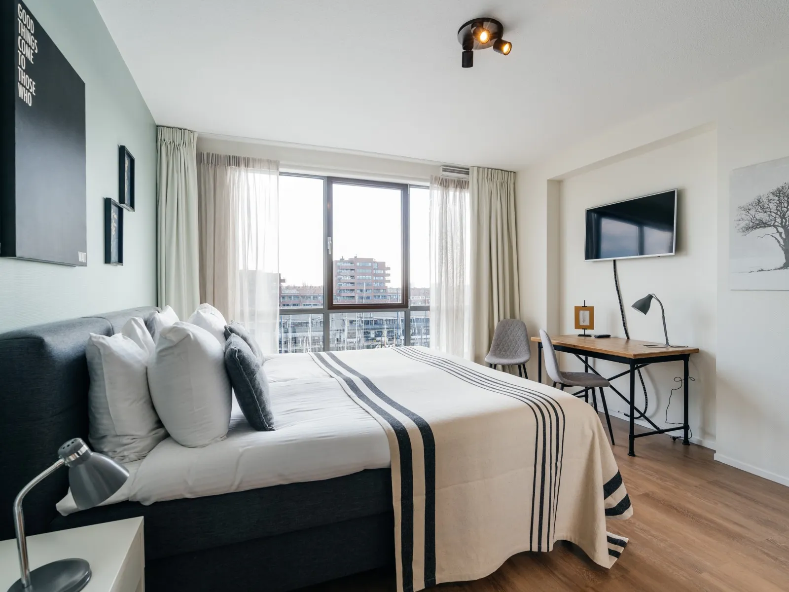 BizStay Harbour 80B ist 123 m2 groß und eines der wenigen Apartments mit 3 Schlafzimmern und 2 Bädern, die BizStay an diesem Standort anbietet. Der geräumige Balkon ist nach Südwesten ausgerichtet und bietet einen Blick auf die Werft und die vielen Yachten, die im Hafen liegen. Die Wohnung selbst ist wunderschön gestaltet und auf höchstem Niveau eingerichtet und bietet ein luxuriöses und komfortables Ambiente für Ihren Aufenthalt. Es verfügt über wichtige Annehmlichkeiten wie High-Speed-Internet, einen großen SMART-Fernseher, eine voll ausgestattete Küche, zwei geräumige Badezimmer mit Dusche, von denen eines auch eine Badewanne hat, eine zweite separate Toilette und eine private Waschküche mit Waschmaschine und Trockner. Mit drei geräumigen Schlafzimmern kann diese Wohnung bis zu sechs Personen beherbergen. Die bequemen Boxspringbetten sorgen für einen erholsamen Schlaf. Jedes Schlafzimmer ist mit einem SMART-Fernseher und einem Schreibtisch ausgestattet, so dass die Wohnung sowohl zum Arbeiten als auch zum Entspannen geeignet ist. Es eignet sich sowohl für Kurz- als auch für Langzeitaufenthalte und bietet alle notwendigen Einrichtungen.