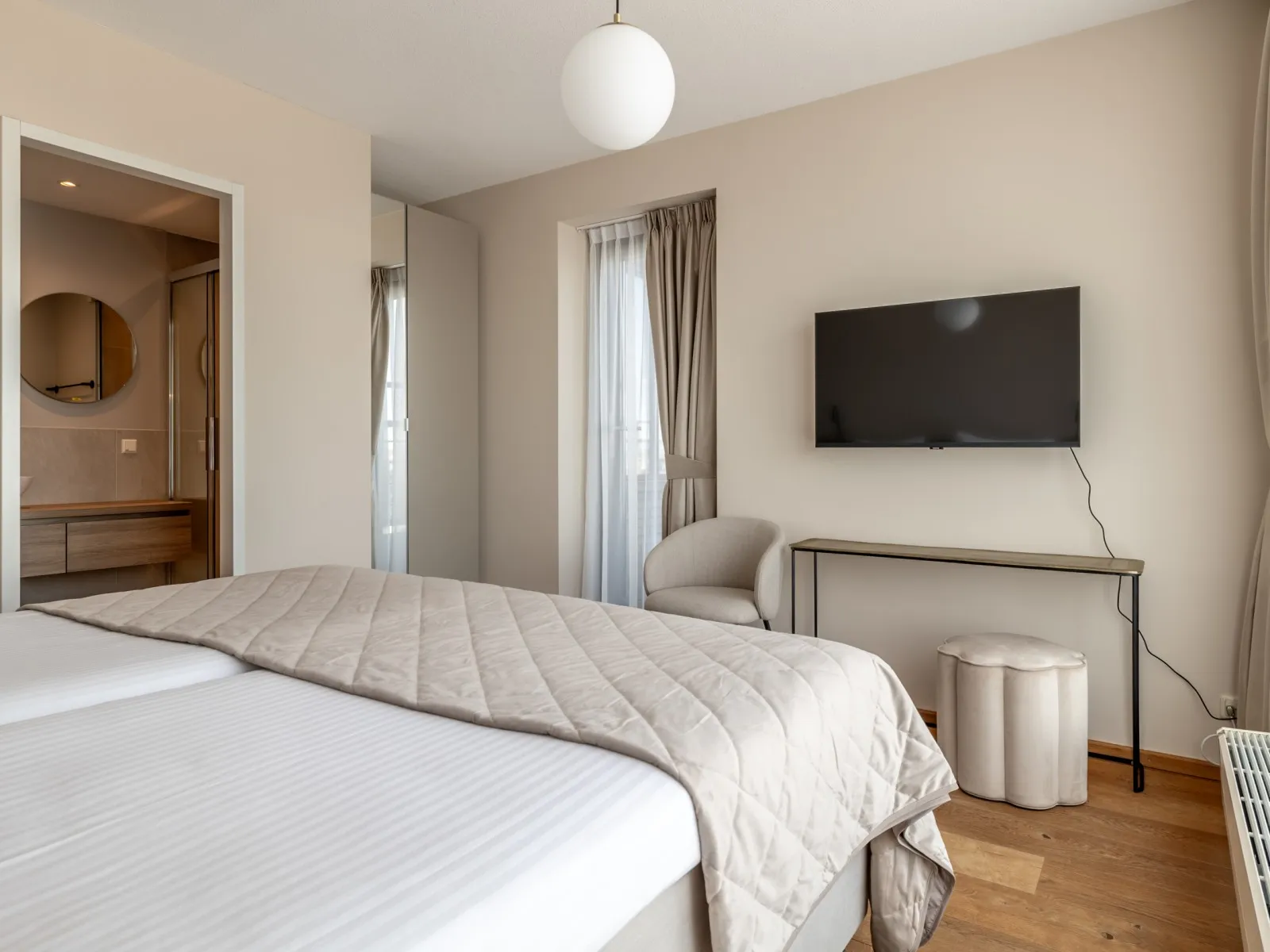 BizStay Harbour 42A ist ein wirklich einzigartiges und bemerkenswertes Penthouse. Dieses geräumige 3-Schlafzimmer-Penthouse verfügt über eine großzügige Wohnfläche von 160 m2 und eine 30 m2 große Terrasse. Durch die großen Fenster im Wohnzimmer können Sie die Aussicht auf Yachten und kommerzielle Fischereifahrzeuge genießen. Die Wohnung selbst ist wunderschön gestaltet und auf höchstem Niveau eingerichtet und bietet einen luxuriösen und komfortablen Rahmen für Ihren Aufenthalt. Sie verfügt über 3 Schlafzimmer, die für 6 Personen geeignet sind. Drei der Schlafzimmer sind mit einem Doppelbett ausgestattet. Jedes Schlafzimmer ist mit einem Fernseher ausgestattet. Zwei moderne Bäder sind vorhanden, eines mit Dusche, Badewanne und Toilette, das zweite ist ein eigenes Bad mit Dusche. Eine zweite Toilette befindet sich auf dem Flur. Klimaanlage ist im Wohnzimmer und in zwei der Schlafzimmer vorhanden und sorgt im Sommer für angenehme Kühle und Komfort.