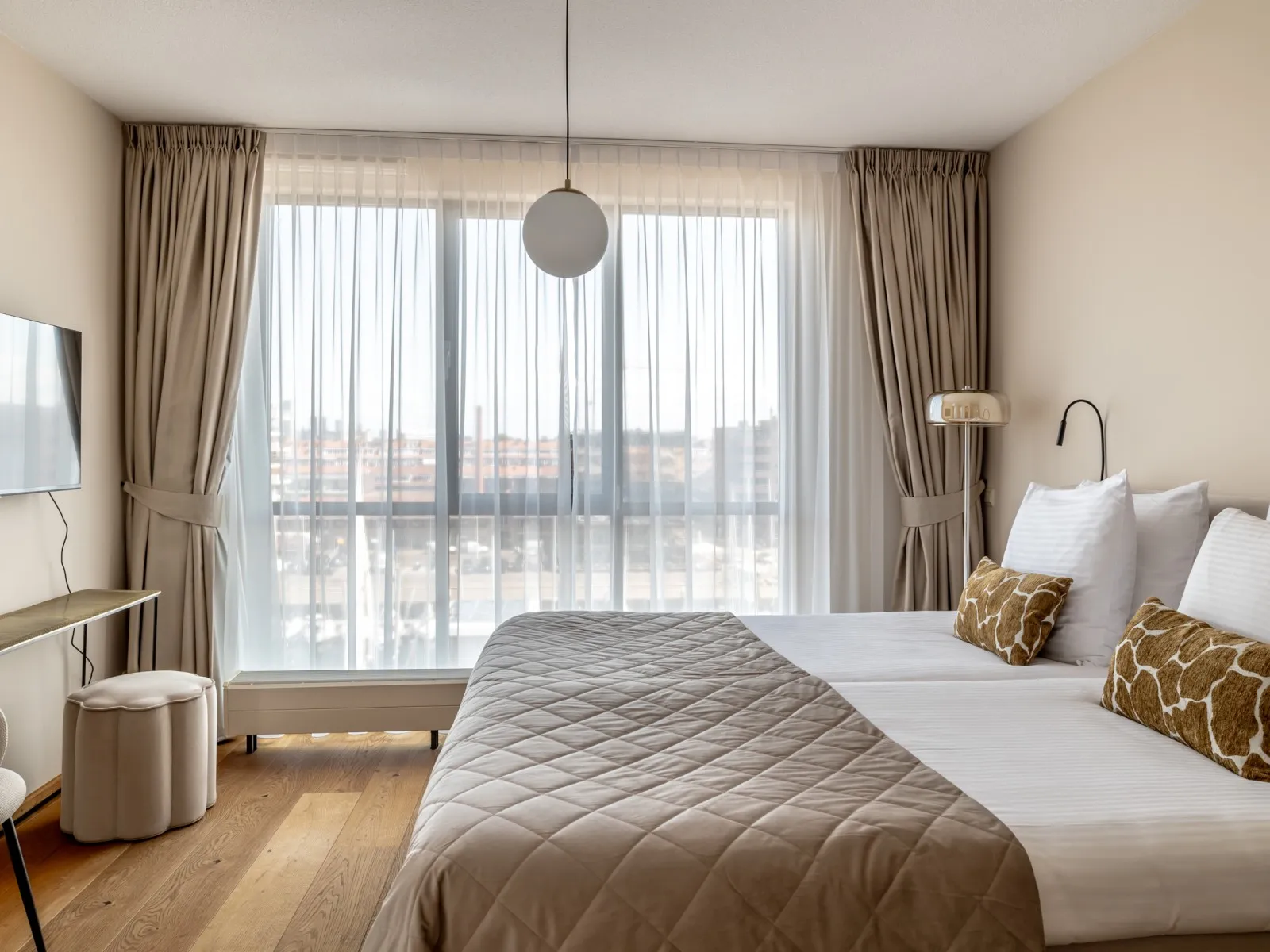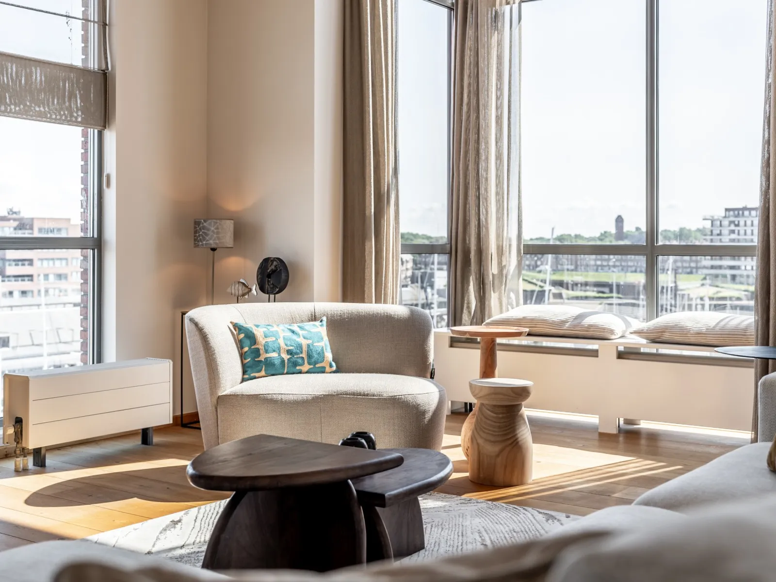 Die Wohnung ist Teil des Nautical Center Scheveningen, das am zweiten Innenhafen von Scheveningen liegt und nur 15 Minuten vom pulsierenden Stadtzentrum von Den Haag entfernt ist. Scheveningen ist das berühmteste Seebad der Niederlande mit einer Fülle von Attraktionen und Strandpavillons. In Laufnähe finden Sie den schönen Strand, einige der besten Restaurants, einen Supermarkt und das weltbekannte Fischgeschäft Simonis mit dem besten frischen Fisch der Stadt. Ein gemütlicher Spaziergang entlang der Promenade führt Sie zum berühmten Pier mit dem Riesenrad, und nach Sonnenuntergang können Sie Ihre Tanzschuhe anziehen und das pulsierende Nachtleben genießen. Während Ihres Aufenthalts können Sie auch einen der vielen kulturellen Hotspots erkunden, die Den Haag zu bieten hat, darunter Weltklasse-Attraktionen wie das Louwman-Automuseum, die Miniaturstadt Madurodam, Legoland und Kunstmuseen wie Escher in the Palace, Mauritshuis und Voorlinden. Diese nahtlose Verschmelzung von Strand- und Stadtleben ist der Grund, warum so viele Menschen Jahr für Jahr an diesen herrlichen Ort zurückkehren.