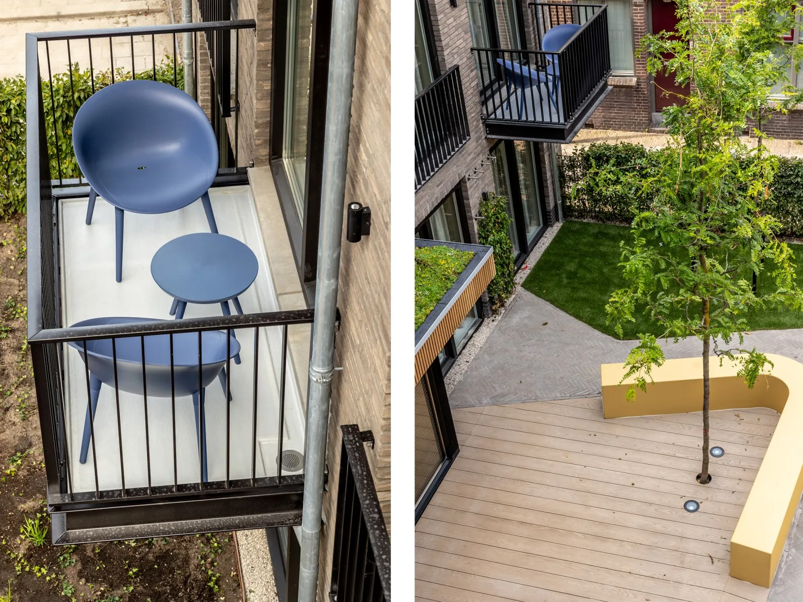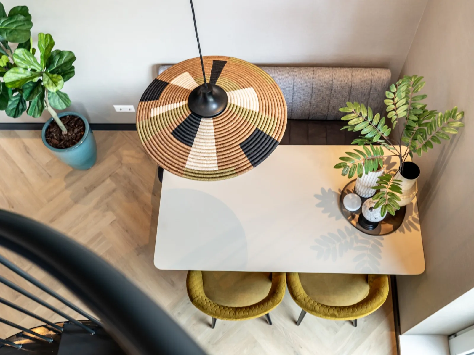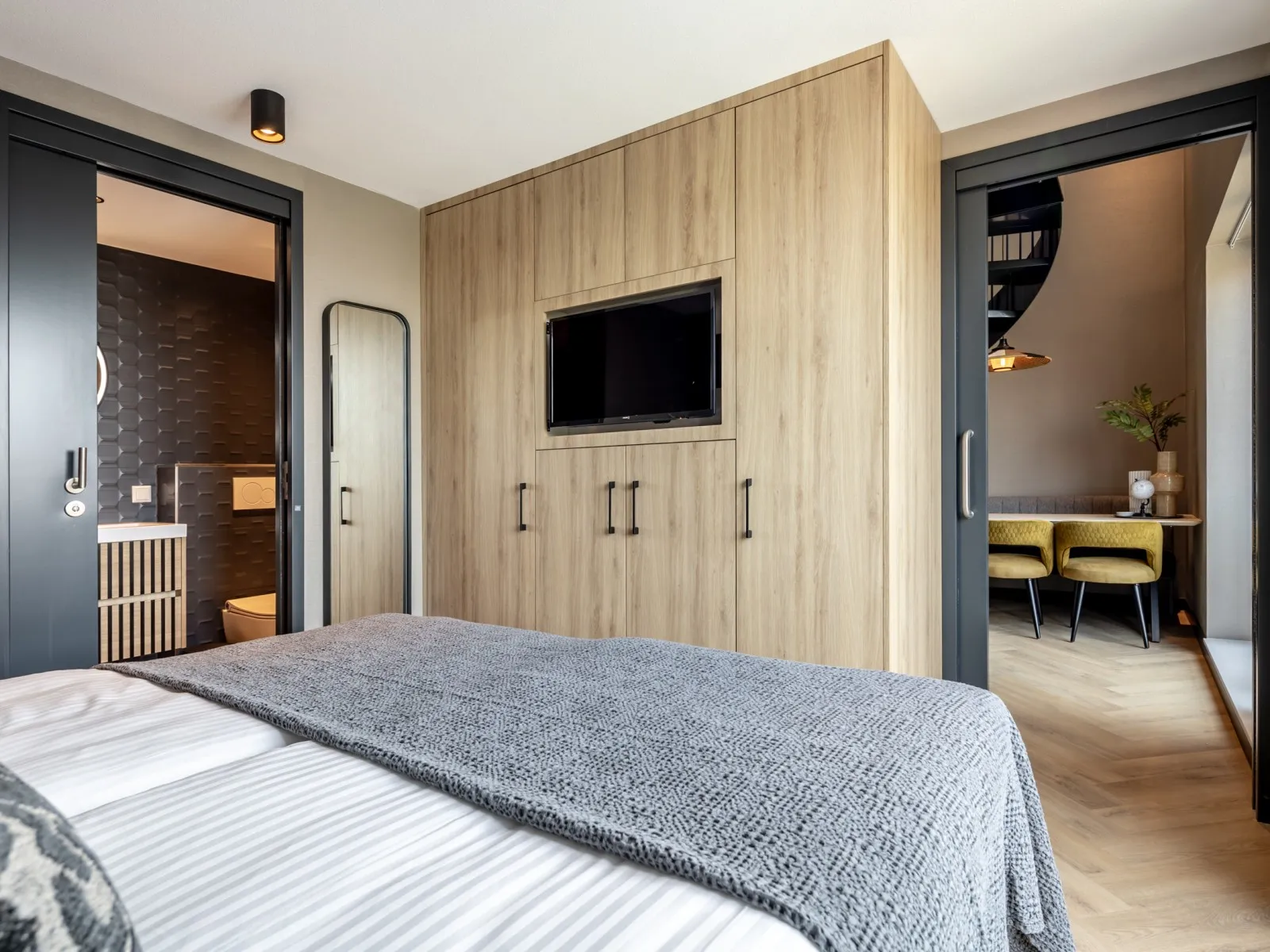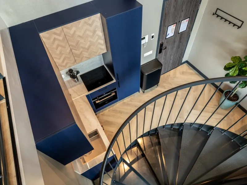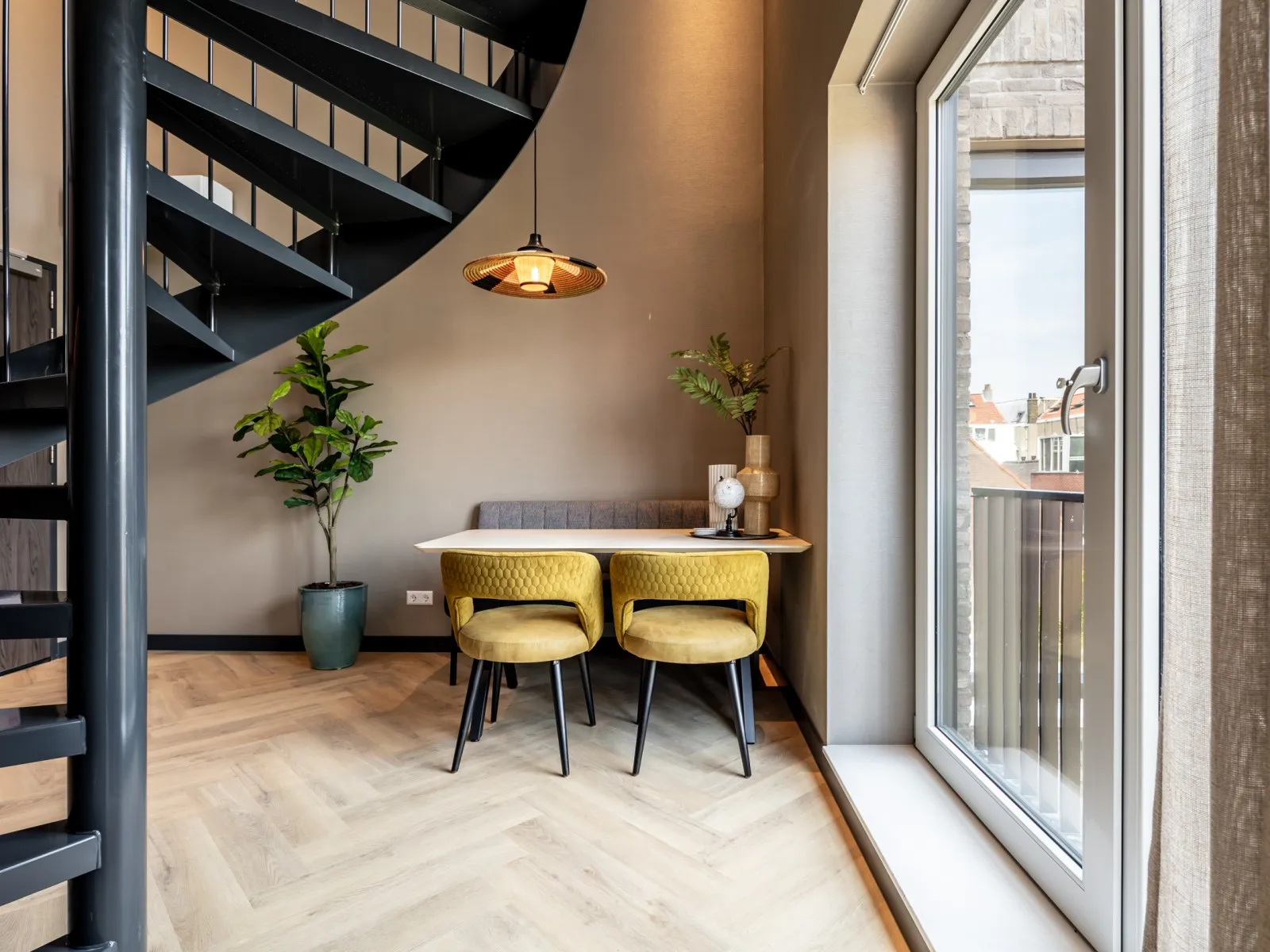 The unique layout makes this 1-bedroom apartment one of a kind. Downstairs the clever open floor plan gives you a fully equipped kitchen and a dining area. Alongside the bedroom features comfortable box spring beds and a SMART TV with Chromecast. Connected to the bedroom is a stylish ensuite bathroom and toilet. Dedicated laundry facilities like a washer and dryer combination is present. Enjoy a small balcony offering a pleasant view of the communal garden. A charming spiral staircase leads to the upper living area, boasting stunning views of Delft's famous churches. You will immediately experience the inviting ambiance. Relax in the stylish living room with a cozy seating area and another SMART TV with Chromecast. A reliable high-speed internet connection is provided. Air conditioning provides both warmth and coolness ensuring comfort year-round. The apartment comfortably accommodates up to 2 guests and is suitable for both short and longs stays.