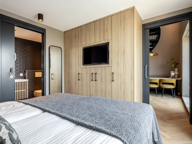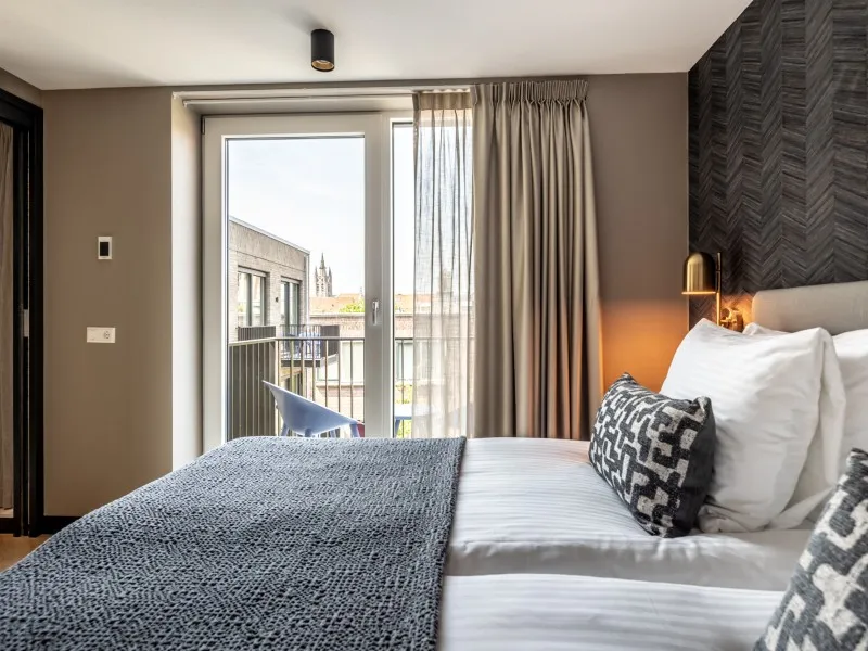 BizStay Delft is situated in the heart of the historic center of Delft and strategically located in between the major cities Rotterdam and The Hague. Both cities can be reached within 20 minutes. Delft's city centre is full of history. As soon as you enter this city, the leaning tower of the Oude Kerk catches your eye. Follow the canals past monumental buildings like the Nieuwe Kerk and City Hall and imagine yourself in the Golden Age. Visit the markets with local products and crafts. Enjoy a leisurely stroll through the stunning Delft Market Square and do not miss the Vermeer Center Delft to learn about the famous painter Vermeer. Yet the city centre is more than just history. There are cosy restaurants and cafés with spacious terraces and you can shop in the many boutiques. Delft has a village feel, with a diverse mix of residents from young to old, so there is something for everyone in this district. Experience the city to the fullest, just steps away from your apartment.