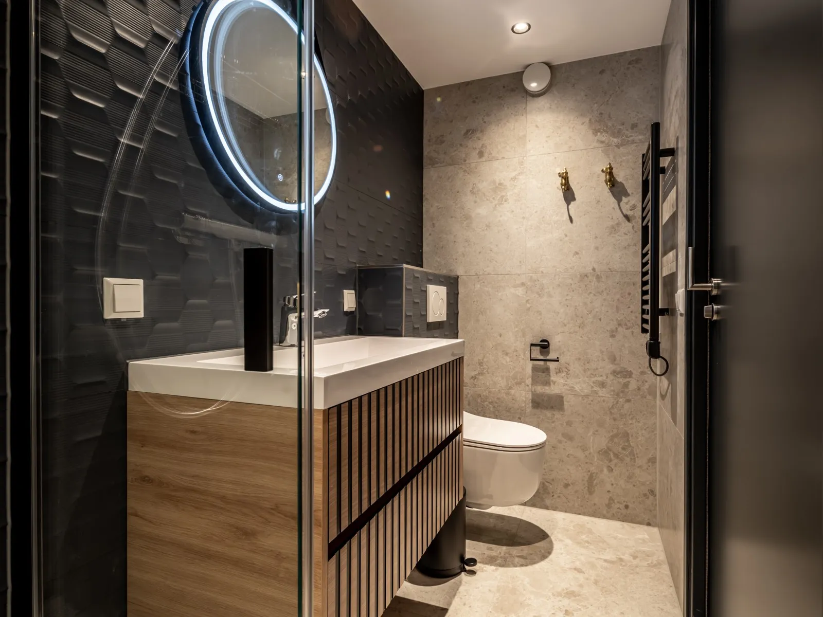 Towels, kitchen and bed linen are present in each apartment. Household appliances such as a vacuum cleaner, iron and ironing board are provided in every apartment. For comfort year-round air conditioning that both heats and cools is available in all apartments. The apartments are non-smoking and pets are not allowed. The apartment complex has an elevator and is highly sustainable thanks to its 100 solar panels. For guests arriving by car, a large parking garage is a 3-minute walk from the accommodation