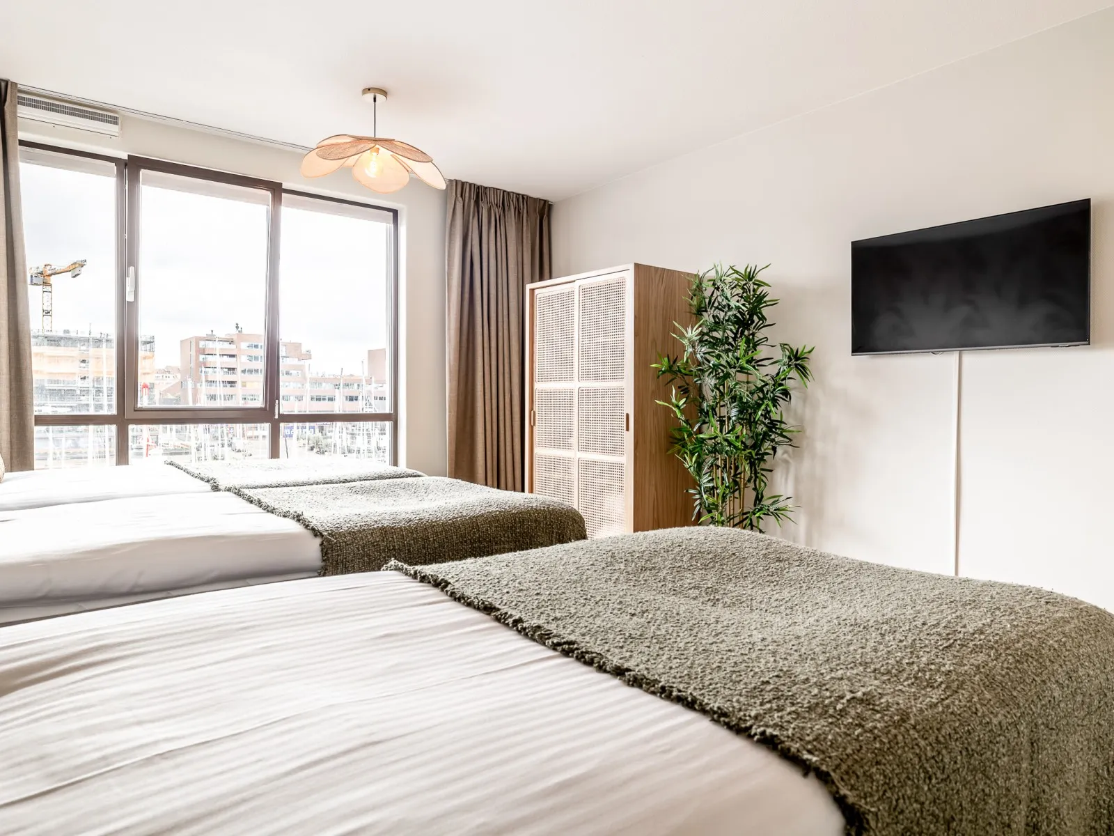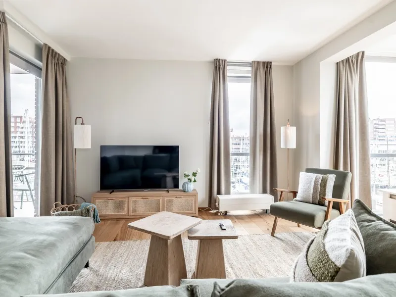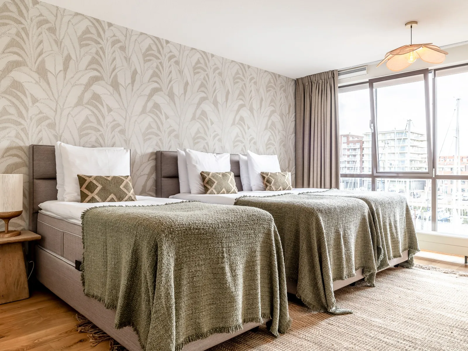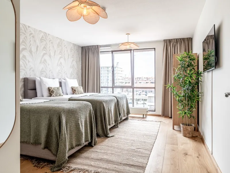 BizStay Harbour 36C is a 2-bedroom apartment, covering 115 square meters overlooking the harbour of Scheveningen. From your balcony you can enjoy the yachts and commercial fishing vessels moored in the harbour. The apartment itself is beautifully designed and furnished to the highest standard, ensuring a comfortable stay. It includes essential amenities such as high-speed internet, a large SMART TV, a fully equipped kitchen, a spacious bathroom, a separate toilet, and private laundry facilities, including a washer and a dryer. With two bedrooms, the apartment can accommodate up to five people which makes it an ideal place for families or friends trevelling together. The comfortable box spring beds in each bedroom ensure a good night's sleep. Each bedroom also features a TV. A desk is provided, making the apartment suitable for both work and leisure, perfect for both short and extended stays.