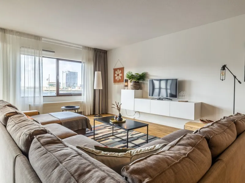 BizStay Harbour 60B is a truly unique and remarkable place to stay. This spacious 2-bedroom apartment, covering an impressive 153 m2, offers breathtaking views on two sides. On one side, a large balcony overlooks the sea while on the other side you can watch the yachts and commercial fishing vessels that are moored in the harbour from a second balcony. The apartment itself is beautifully designed and furnished to the highest standard, providing a luxurious and comfortable setting for your stay. It includes essential amenities such as high-speed internet, a large SMART TV, a fully equipped kitchen, a spacious bathroom with a bath, shower and a toilet. A second separate toilet is present as well as private laundry facilities, including a washer and a dryer. The bedrooms come with comfortable box spring beds and a TV. This apartment is also equipped with one high quality full size folding bed, expanding the capacity to a maximum of five people, making it a cost effective choice for families with kids. A desk is provided, making the apartment ideal for both work and relaxation. It's suitable for both short-term and long-term stays, offering all the necessary facilities.