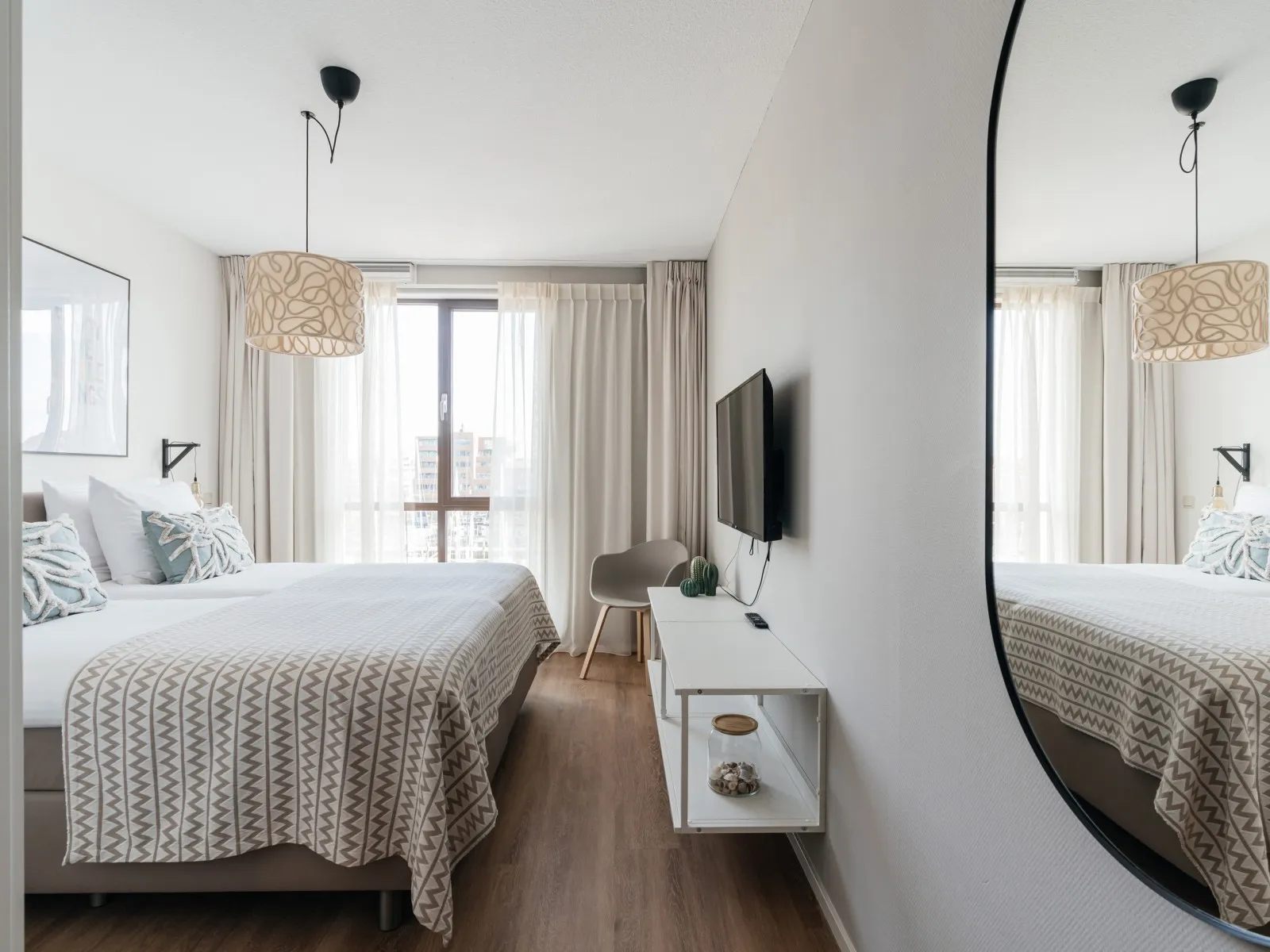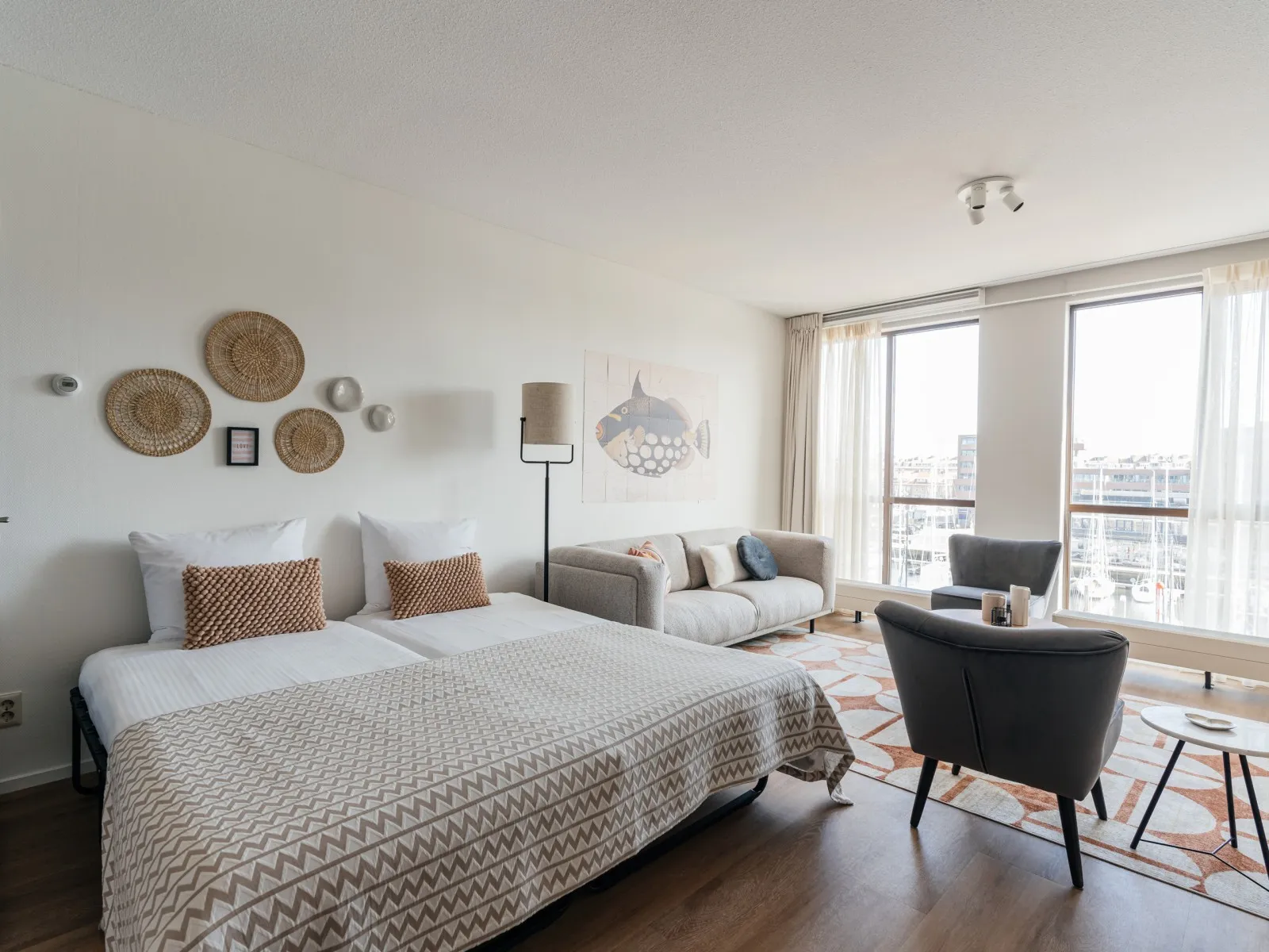 The apartment is part of the Nautical Center Scheveningen, nestled at the second inner harbour of Scheveningen and only 15 minutes away from the vibrant city center of The Hague. Scheveningen is the most famous seaside resort of The Netherlands with an abundance of attractions and beach pavilions. Within walking distance, you'll find the beautiful beach, some of the finest local restaurants, a supermarket, and the 'world-renowned' local fish shop Simonis, with the best fresh fish in town. A leisurely stroll along the promenade takes you to the famous pier with the ferris wheel, and after sunset, you can put on your dancing shoes to enjoy the vibrant nightlife. During your stay, you can also explore one of the many cultural hotspots the city of The Hague has to offer, including world-class attractions like the Louwman car museum, miniature city Madurodam, Legoland and art museums like Escher in the Palace, Mauritshuis, and Voorlinden. This seamless fusion of beach life and city life is why so many people return to this stunning location year after year.