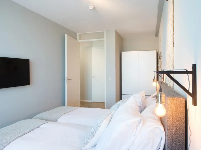This is one of the few 3-bedroom / 2 bathroom apartments BizStay offers on this venue. With 136 m2 living space, BizStay Harbour 66 can accommodate up to seven people. The balcony faces sea side and offers a breathtaking view on the sea and the numerous boats going in and out the harbour. The apartment itself is beautifully designed and furnished to the highest standard, providing a luxurious and comfortable setting for your stay. It includes essential amenities such as high-speed internet, a large SMART TV, a fully equipped kitchen, two spacious bathrooms with shower, of which one also has a bath, one separate toilet, and private laundry facilities including a washer and a dryer. With three spacious bedrooms, the apartment can accommodate up to seven people. The comfortable box spring beds ensure a good night's sleep. Each bedroom is equipped with a SMART TV, and a desk is provided, making the apartment ideal for both work and relaxation. It's suitable for both short-term and long-term stays, offering all the necessary facilities.