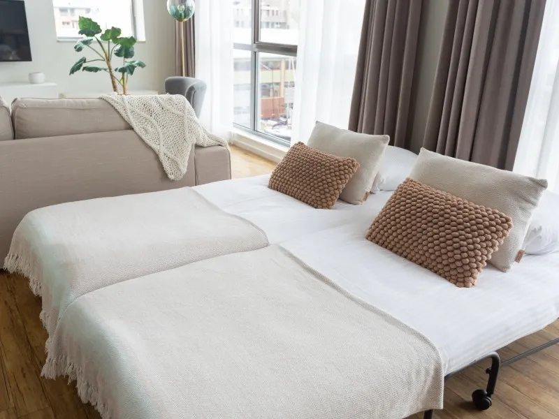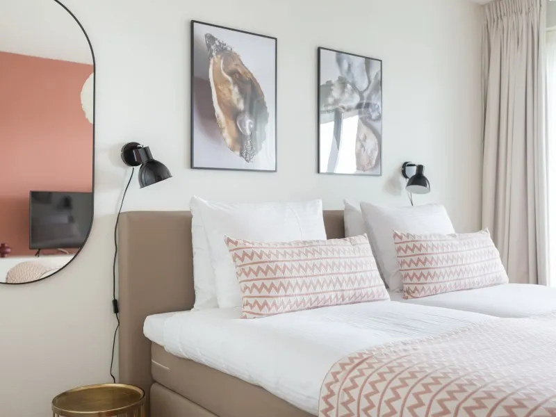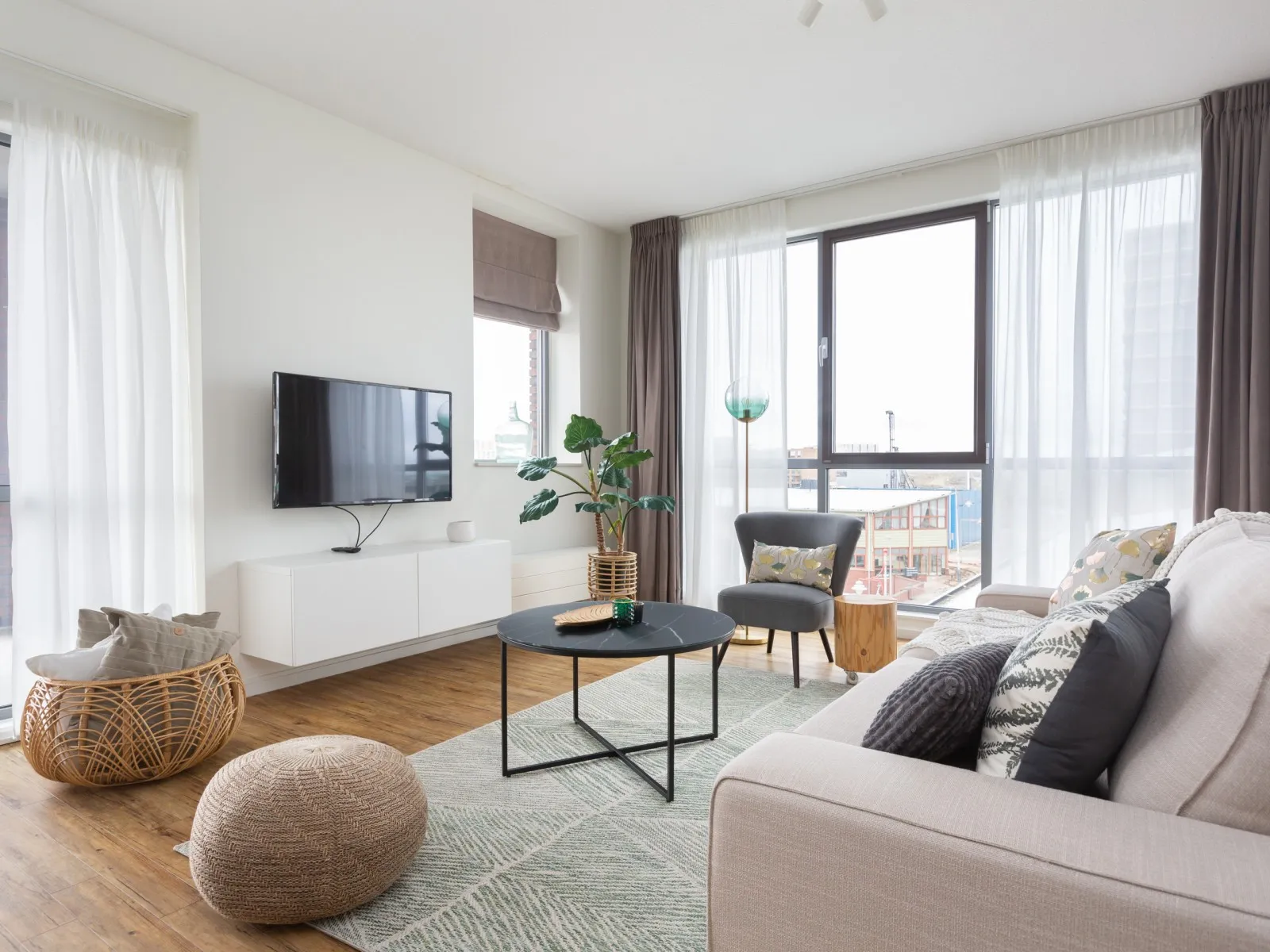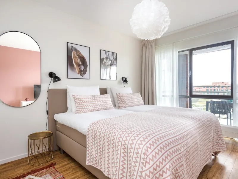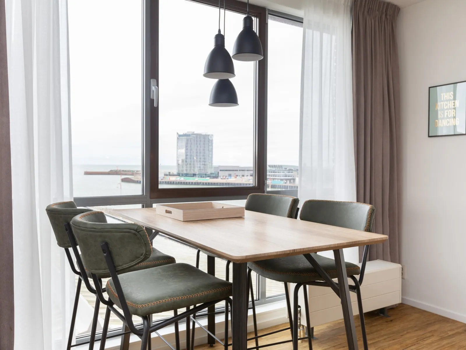 This luxurious 1-bedroom apartment measures 83 m2. BizStay Harbour 80C offers a spacious balcony facing the sunny South-West and West and overlooking the ship yard and the many yachts in the marina, as well as the North Sea. The apartment includes a secured private parking space with elevator access taking you to the apartment entrance. Inside the apartment, you'll find contemporary furnishings along with essential amenities like high-speed internet, a large SMART TV, a fully equipped kitchen, a spacious bathroom with shower and bath, a separate toilet, and laundry facilities with a washer and dryer. The comfortable boxspring beds guarantee a good night's sleep. This apartment also comes with two full size folding beds, expanding the capacity to a maximum of four people making it a cost effective choice for families with kids.
