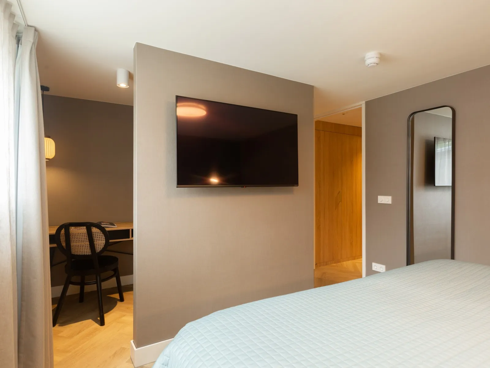 As soon as you step through the door, you'll be greeted by the contemporary furnishings that create a warm and inviting atmosphere in this stylish ground-floor duplex apartment. It boasts 3 bedrooms, each with its own private bathroom, and two separate toilets, making it an ideal choice for families and business travelers alike. The apartment features a fully equipped kitchen and private laundry facilities for your convenience. Each bedroom is furnished with high-quality, comfortable beds, and all rooms are equipped with Smart TVs set up with Chromecast. Additionally, a comfortable desk makes this apartment a pleasant and work-friendly space, complete with a reliable and fast internet connection. The apartment offers a picturesque view of the historic canal and is located in the Buurtschap 2005 district in the heart of The Hague, known for its pleasant, safe, and lively atmosphere.
