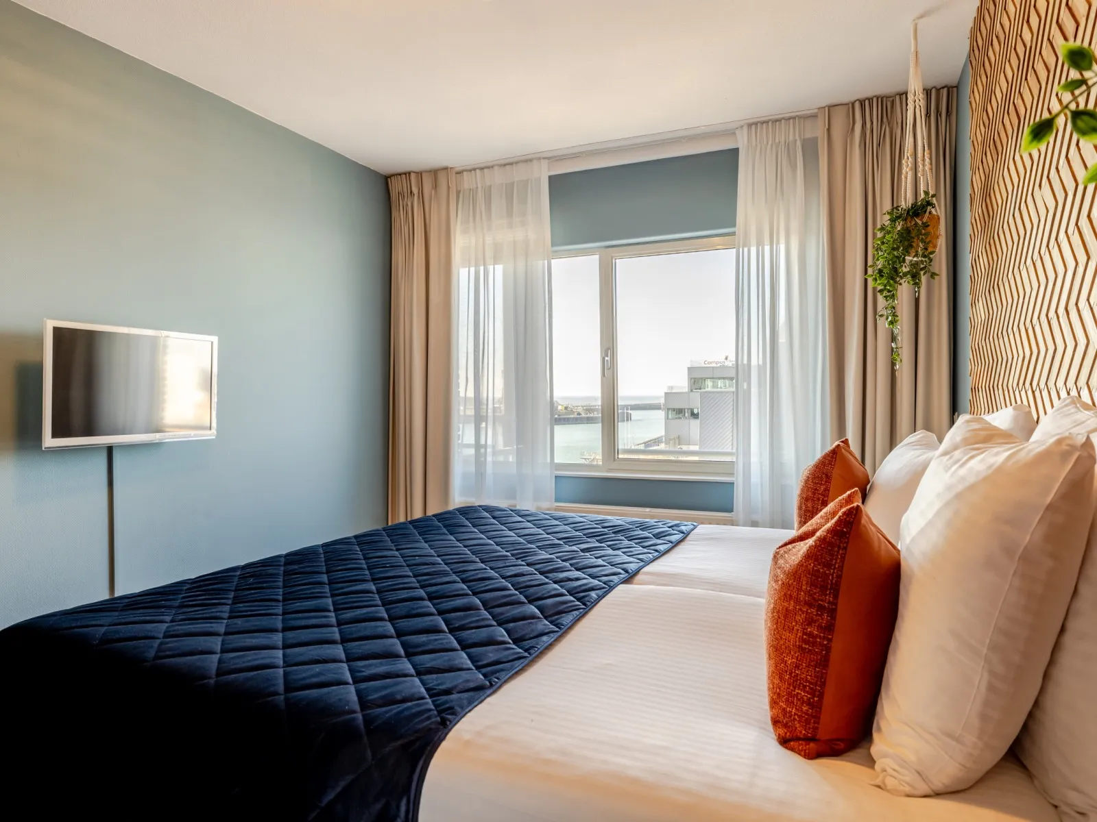 This luxurious 1-bedroom apartment measures 84m2. BizStay Harbour 10B offers a balcony with partial sea view, and it is located opposite of the Dutch Olympic Sailing facility. The apartment includes a secured private parking space and offers elevator access. Inside the apartment, you'll find beautiful design and furnishings along with essential amenities like high-speed internet, a large SMART TV, a fully equipped kitchen, a spacious bathroom with shower, a separate toilet, and laundry facilities with a washer and dryer. The comfortable boxspring beds guarantee a good night's sleep.