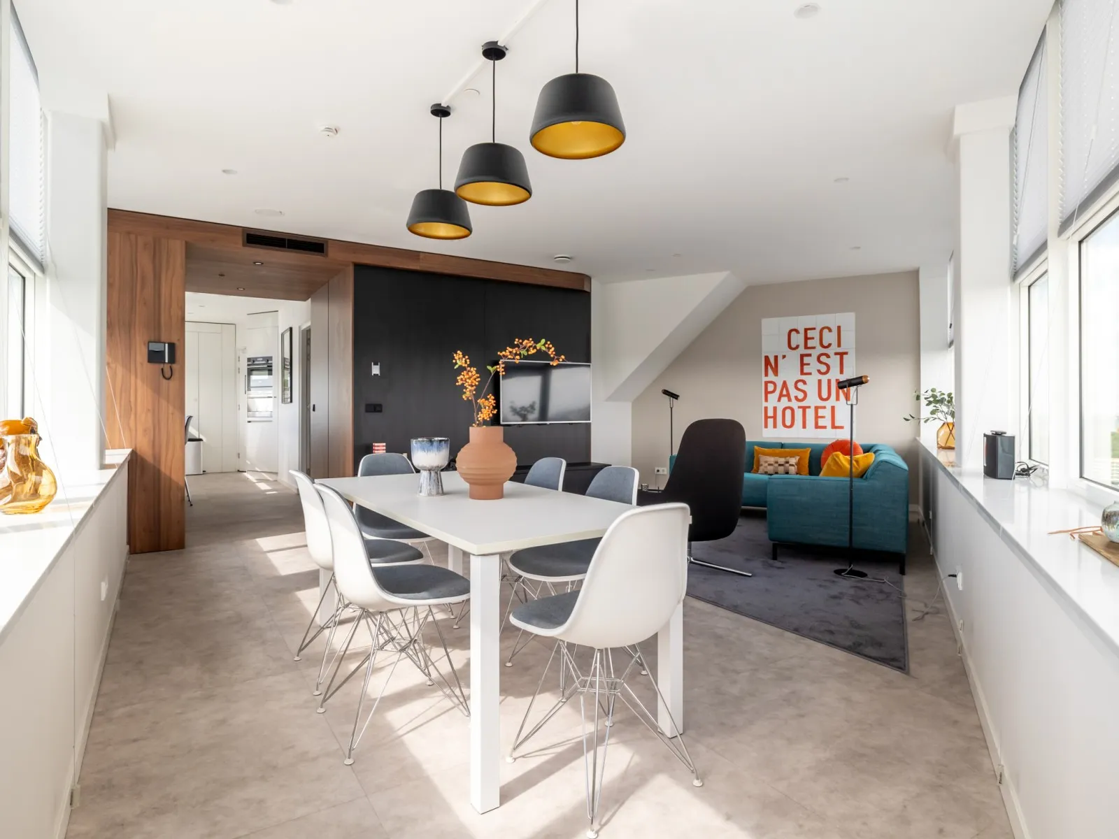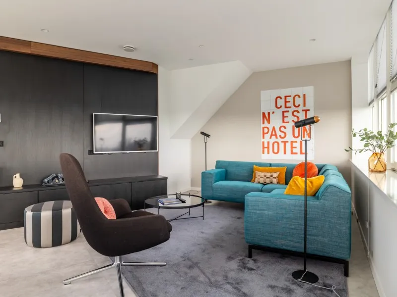 On the ground floor, guests will find a central reception area with a cosy coffee corner and a fitness room, both free of charge. For those arriving by (electric) car, there is a secure covered garage with four charging stations. The property is also excellently connected by public transport.