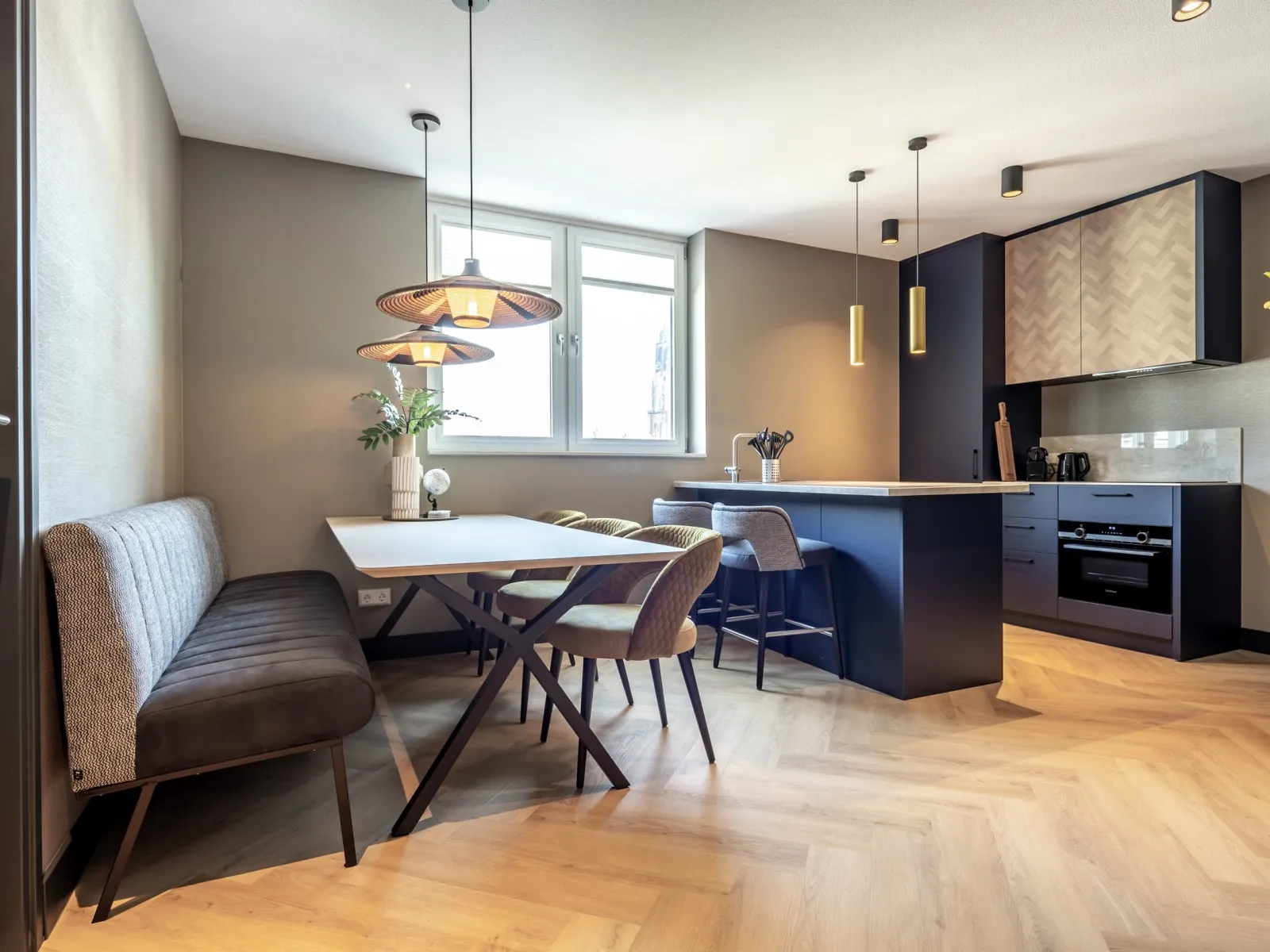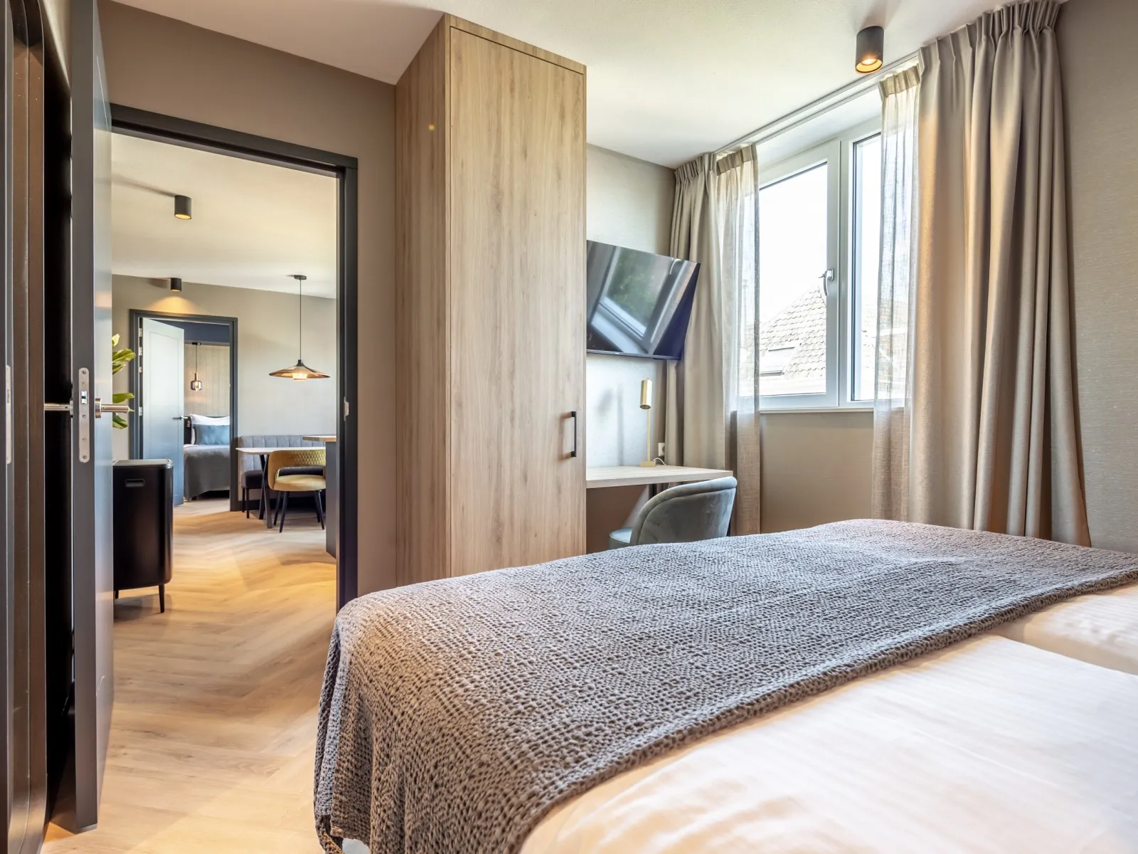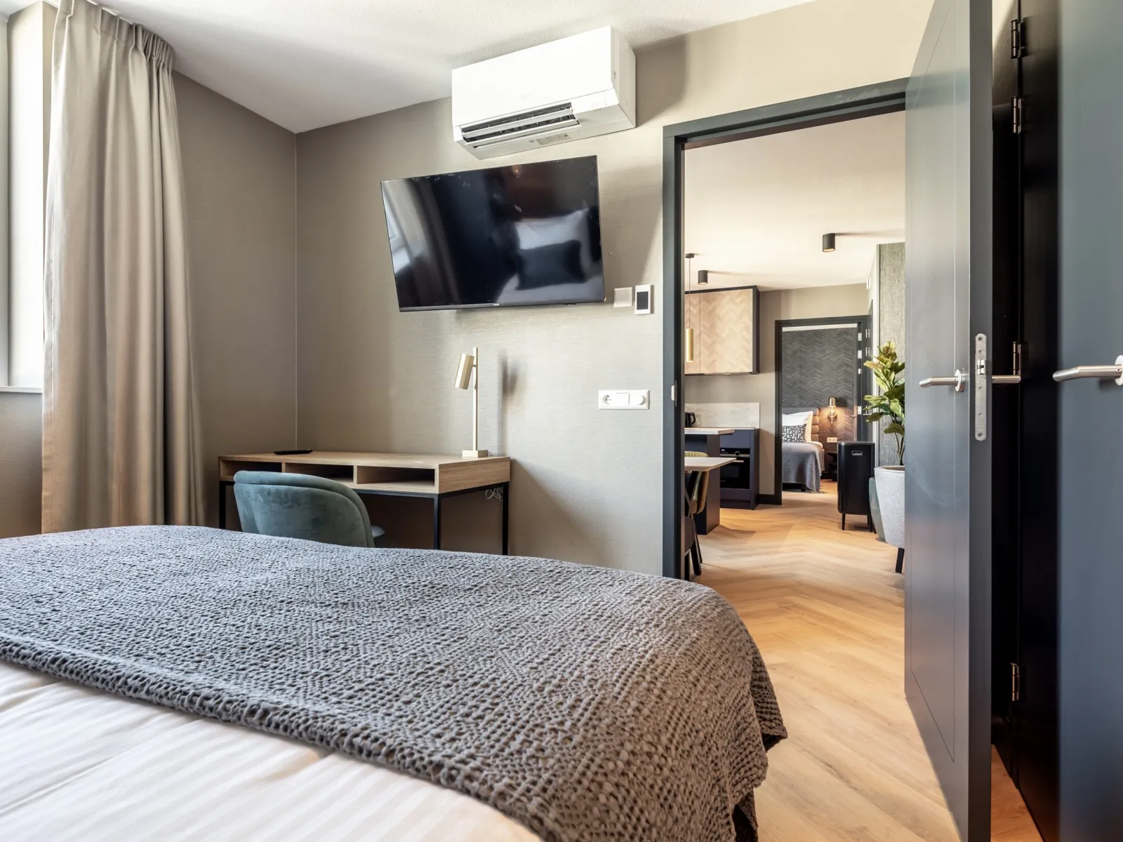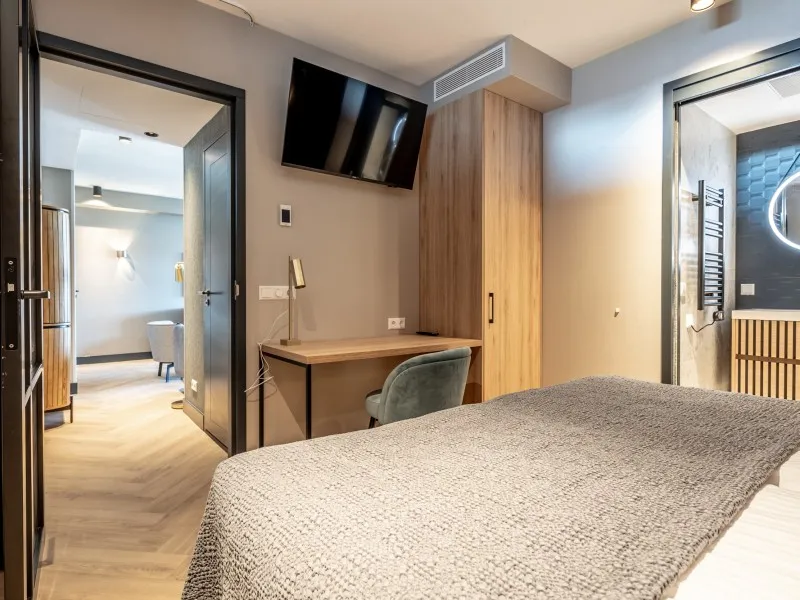Dit ruime appartement met drie slaapkamers van 80m2 is ideaal voor gezinnen, vrienden of collega's die samen reizen. Het aparment is voorzien van een volledig uitgeruste keuken met een gezellige eethoek, terwijl de woonkamer comfort biedt met een SMART-tv en Chromecast. Met drie slaapkamers is het appartement geschikt voor maximaal 6 gasten. Alle drie de slaapkamers hebben comfortabele boxspringbedden en een SMART TV en Chromecast. Er zijn bureaus aanwezig waardoor het appartement ook een werkvriendelijke plek is. Een betrouwbare high-speed internetverbinding is aanwezig. Eén slaapkamer heeft een ensuite badkamer met een douche, een badmeubel met laden en een verwarmde spiegel. Een tweede badkamer bevindt zich op de gang en heeft een douche, een toilet, een badmeubel met laden en een verwarmde spiegel. Er is ook een apart tweede toilet op de gang. Er zijn speciale wasfaciliteiten aanwezig, zoals een wasmachine en droger. Airconditioning zorgt voor zowel warmte als koelte, waardoor comfort het hele jaar door gegarandeerd is.