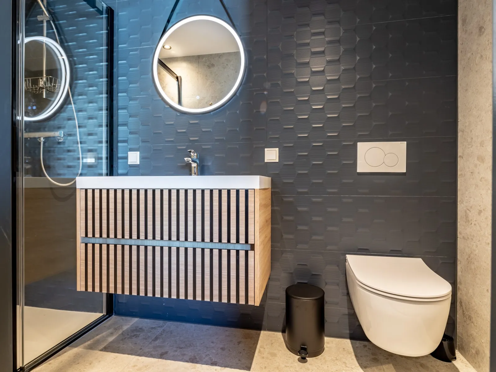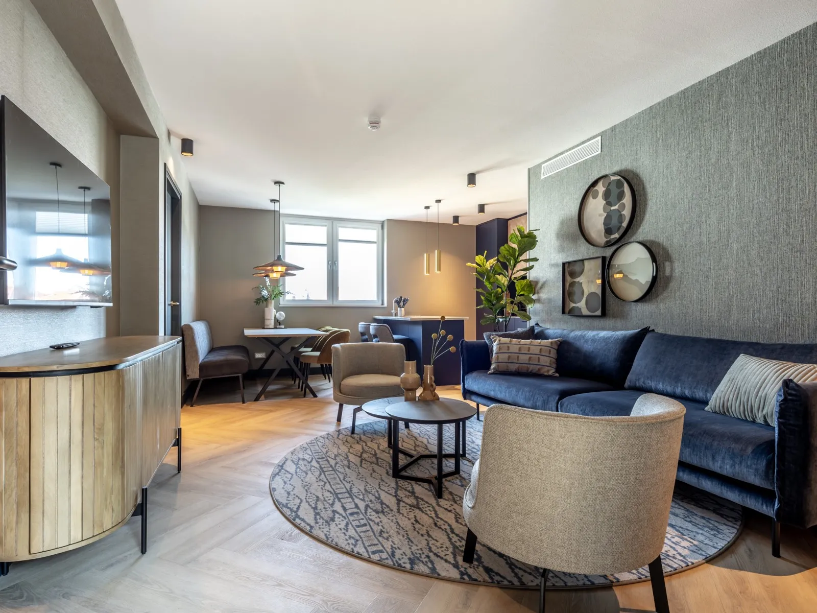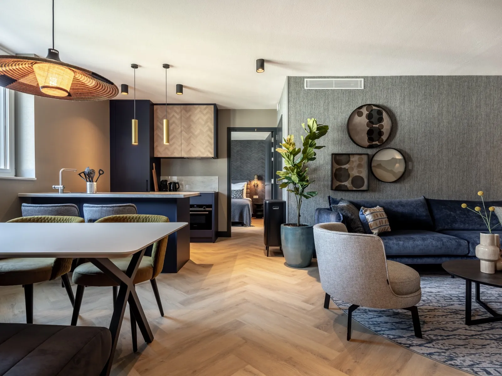 Dit ruime appartement met drie slaapkamers van 80m2 is ideaal voor gezinnen, vrienden of collega's die samen reizen. Het aparment is voorzien van een volledig uitgeruste keuken met een gezellige eethoek, terwijl de woonkamer comfort biedt met een SMART-tv en Chromecast. Met drie slaapkamers is het appartement geschikt voor maximaal 6 gasten. Alle drie de slaapkamers hebben comfortabele boxspringbedden en een SMART TV en Chromecast. Er zijn bureaus aanwezig waardoor het appartement ook een werkvriendelijke plek is. Een betrouwbare high-speed internetverbinding is aanwezig. Eén slaapkamer heeft een ensuite badkamer met een douche, een badmeubel met laden en een verwarmde spiegel. Een tweede badkamer bevindt zich op de gang en heeft een douche, een toilet, een badmeubel met laden en een verwarmde spiegel. Er is ook een apart tweede toilet op de gang. Er zijn speciale wasfaciliteiten aanwezig, zoals een wasmachine en droger. Airconditioning zorgt voor zowel warmte als koelte, waardoor comfort het hele jaar door gegarandeerd is.
