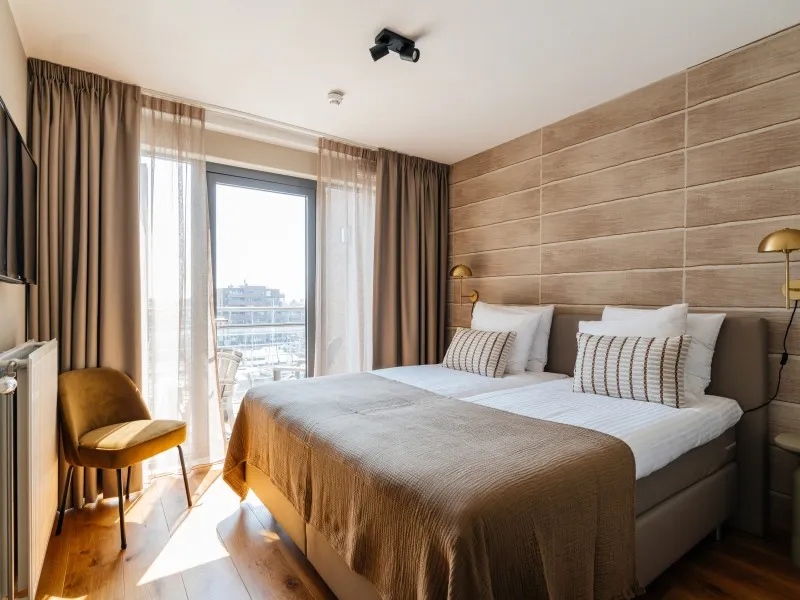 Dit luxe appartement met 1 slaapkamer heeft een oppervlakte van 79 m2 en is voorzien van een balkon aan de havenzijde vanwaar u kunt genieten van het uitzicht op de honderden jachten en commerciële vissersschepen. BizStay Harbour 40B is gelegen in het Nautisch Centrum Scheveningen aan de tweede binnenhaven van Europa's grootste en mondaine badplaats. De locatie is slechts 15 minuten verwijderd van het bruisende centrum van Den Haag. Een lift brengt je rechtstreeks van de parkeergarage naar de ingang van het appartement. Het appartement zelf is prachtig ontworpen en ingericht volgens de hoogste standaard. Het biedt essentiële voorzieningen zoals snel internet, een grote SMART TV in zowel de woon- als slaapkamer, een volledig uitgeruste keuken, een ruime badkamer, een apart toilet en wasfaciliteiten. De comfortabele boxspringbedden staan garant voor een goede nachtrust.