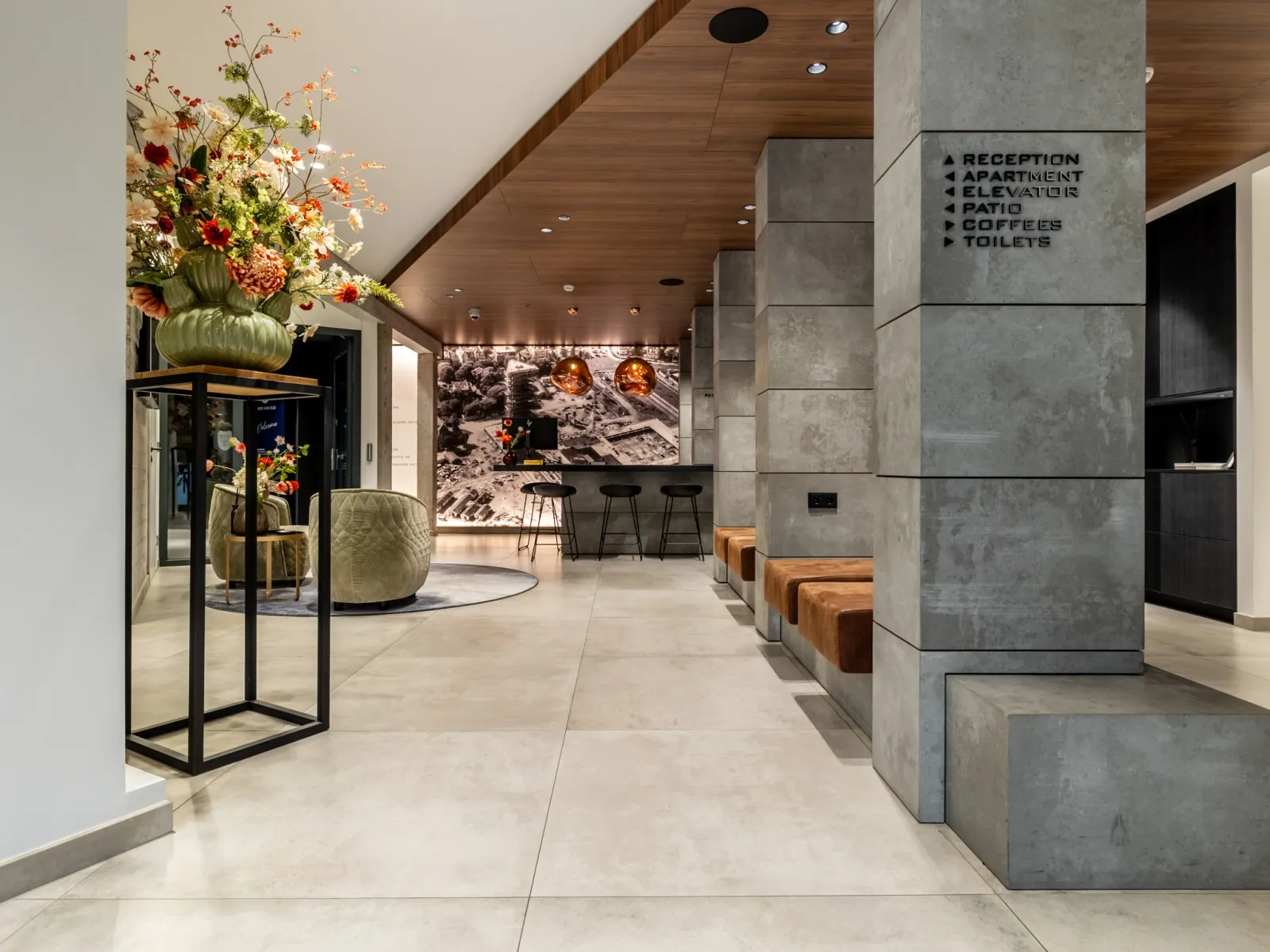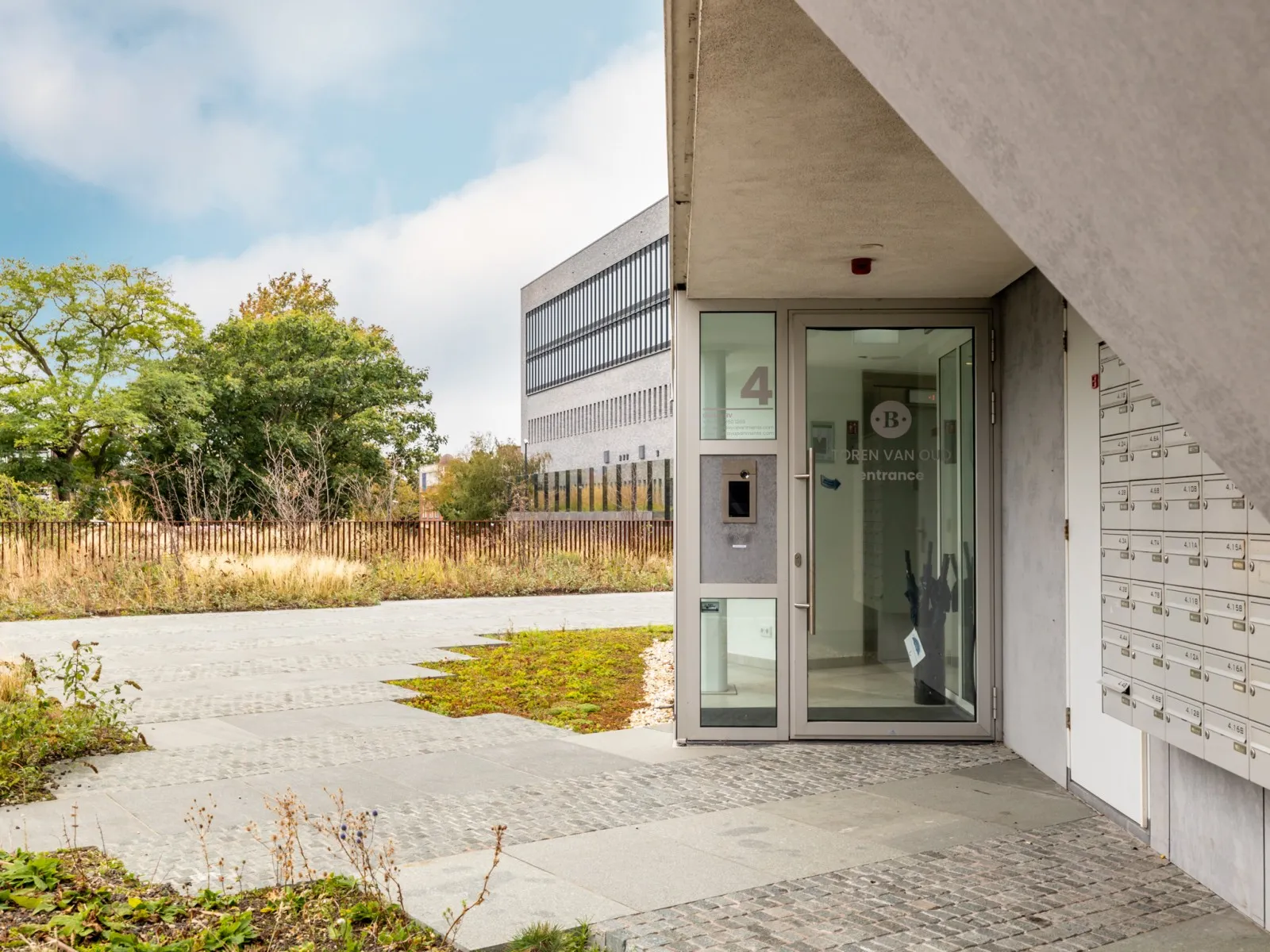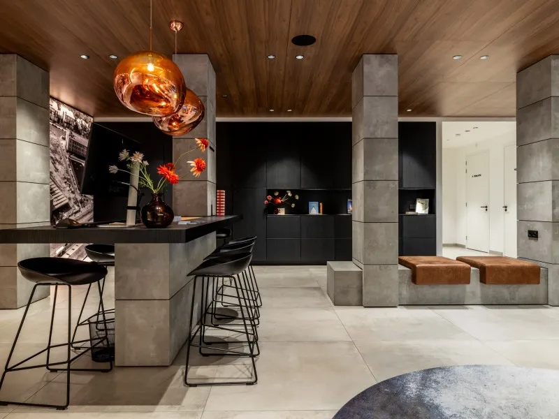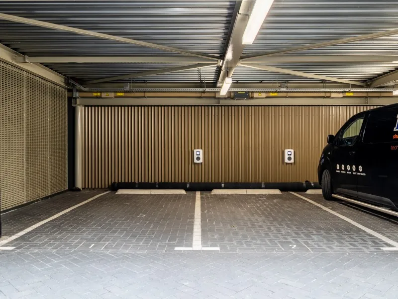 Onder de appartementen is een centrale ontvangsthal met koffiehoek en fitnessruimte waar gasten gratis toegang toe hebben. Voor degenen die met de (elektrische) auto komen, is er een overdekte en beveiligde parkeergarage met 4 oplaadpunten. De locatie is echter ook uitstekend bereikbaar met het openbaar vervoer.